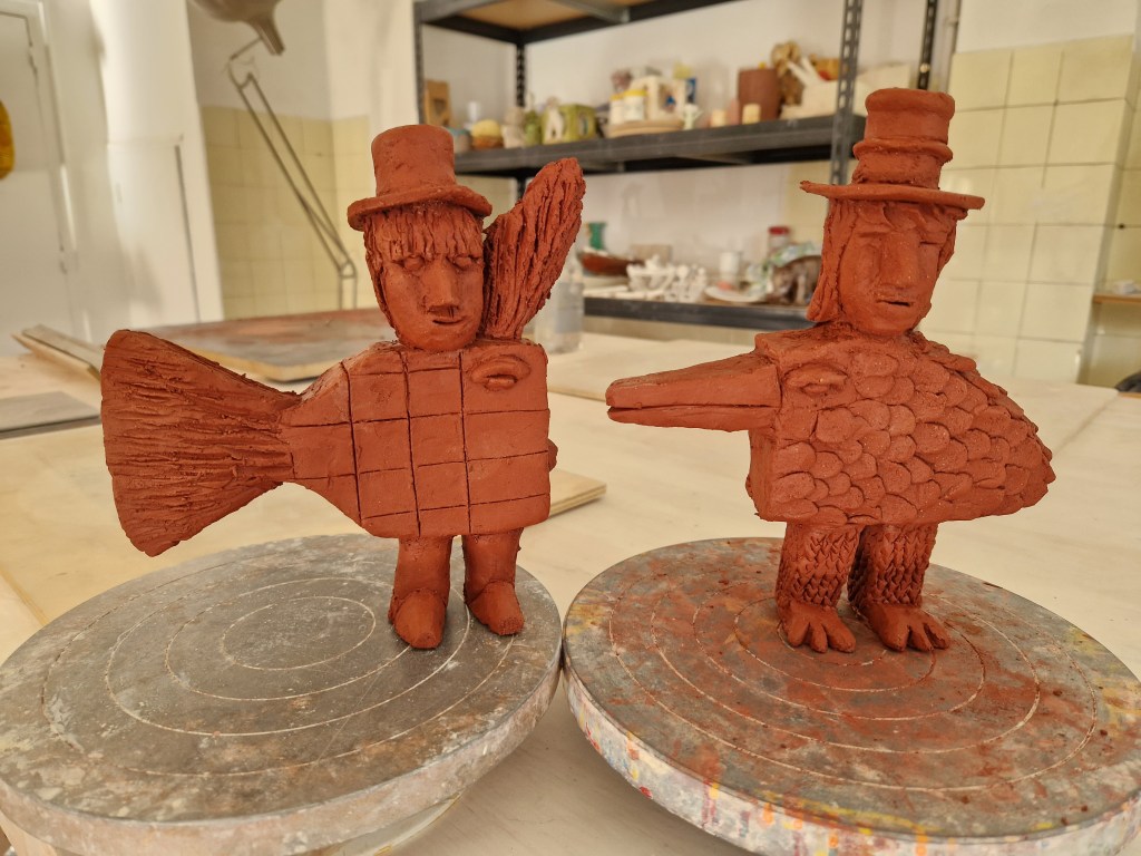Fishman/woman, Birdman/woman, glazed, 130 euros each, a pair for 240 euros